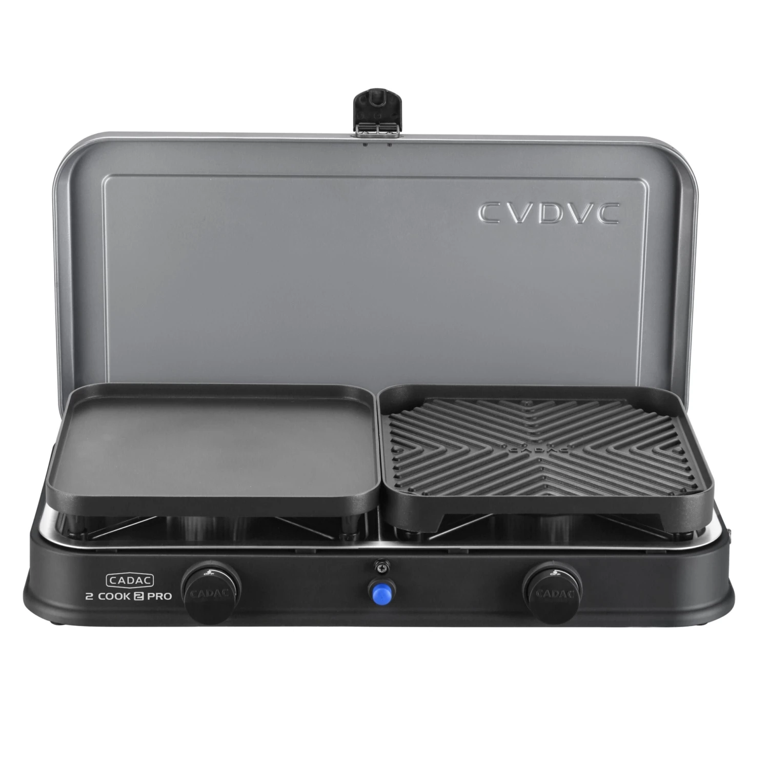 Cook for 2-4 people Ideal for your camping and caravanning needs, the Cadac BBQ 2 Cook 2 Pro Deluxe is a lightweight low pressure table top cooker that works with refillable low pressure gas cylinders. The automatic piezo ignition on both burners assures a safe and quick fire up of the cooker as well as independent cooking on either side. With the separate burners and accessories provided, you are presented with a variety of cooking options to feed up to four people. The Cook 2 Pro Deluxe is perfect for making breakfast, the flat plate can make fried eggs and pancakes, whist the grill plate is ideal for all bacon and sausages. The interchangeable plates and steel burner base also make it possible to cook food and boil the kettle simultaneously so you can enjoy your egg sandwich with a nice cup of tea. The 2 Cook 2 Pro Deluxe is also fitted with rubber feet, providing a secure and stable cooking experience. It has a compact design and comes with a handy carry bag, making it ideal for both storage and transportation.