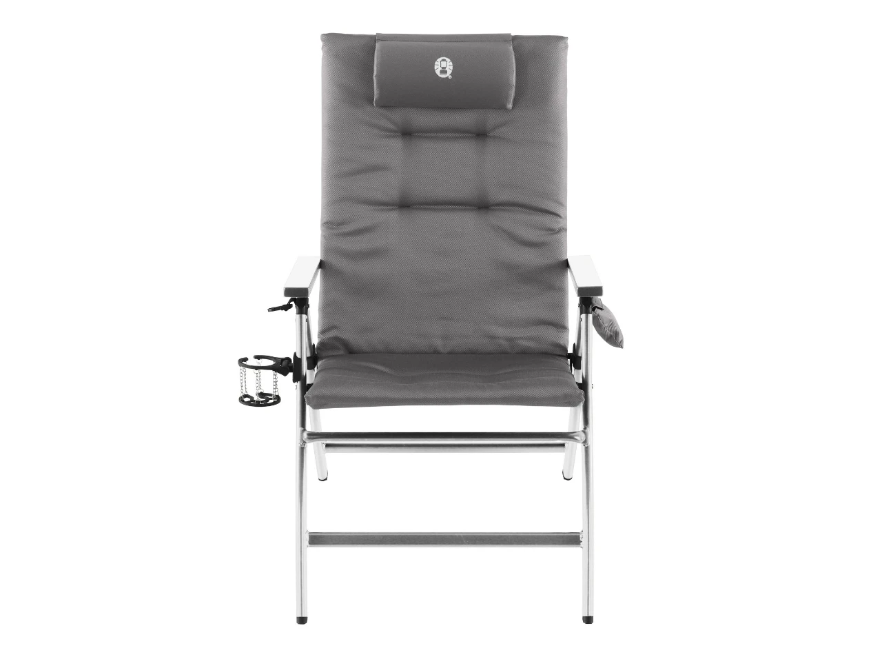 Enjoy post-adventure relaxation with the Coleman 5 Position Recliner Chair. Featuring five reclining positions and a supportive design with a tall back and headrest, this chair ensures comfort and flexibility. Its strong, lightweight aluminium frame holds up to 120kg and packs away conveniently in its own carry bag, while the built-in open structure beverage holder ensures your drinks stay close to hand and lets face it, it’s all about the drinks holder.