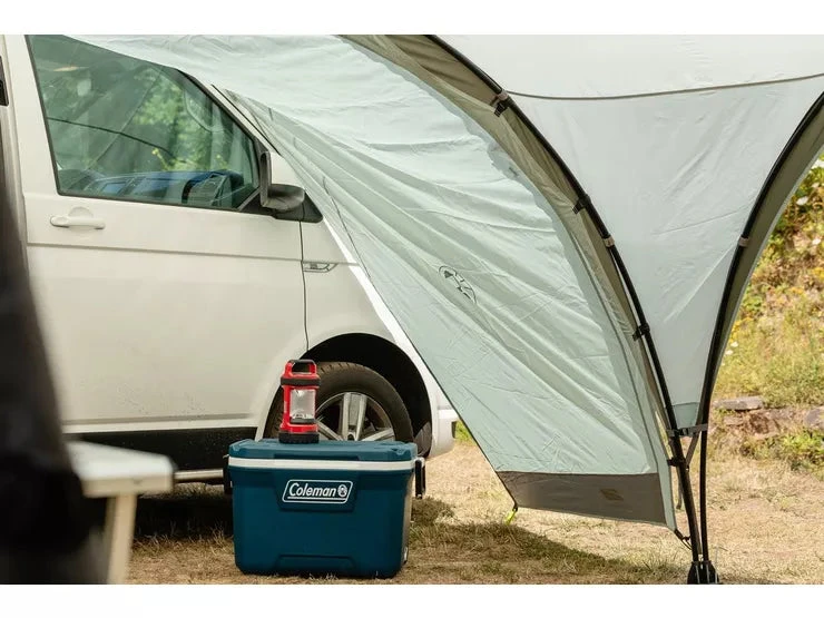 The Coleman Event Shelter Driveaway Awning Connector M is designed specifically to fit the M-sized Event Shelter, Event Shelter Pro, and Performance models. This connector accommodates a range of vehicles including VW campervans, smaller motorhomes, and caravans, with a lower attaching height of 180-210 cm. Made with WeatherTec™ Polyester, UV Guard™ SPF50, and fire retardant materials, it can be set up in as little as 10 minutes and weighs only 2.05 kg. With its 35x19x13 cm pack size, it is a practical and reliable way to expand your shelter.