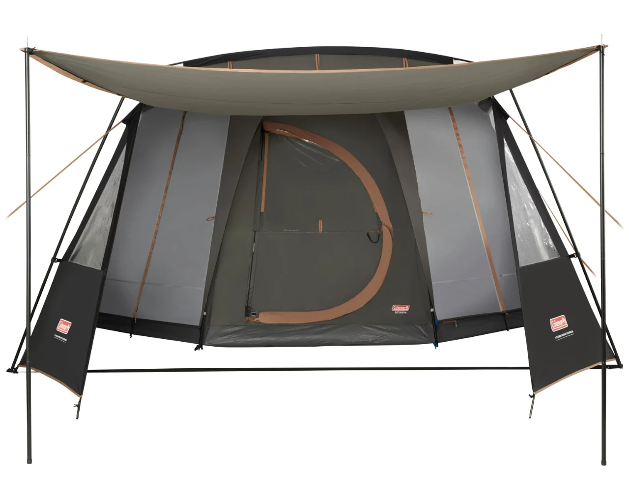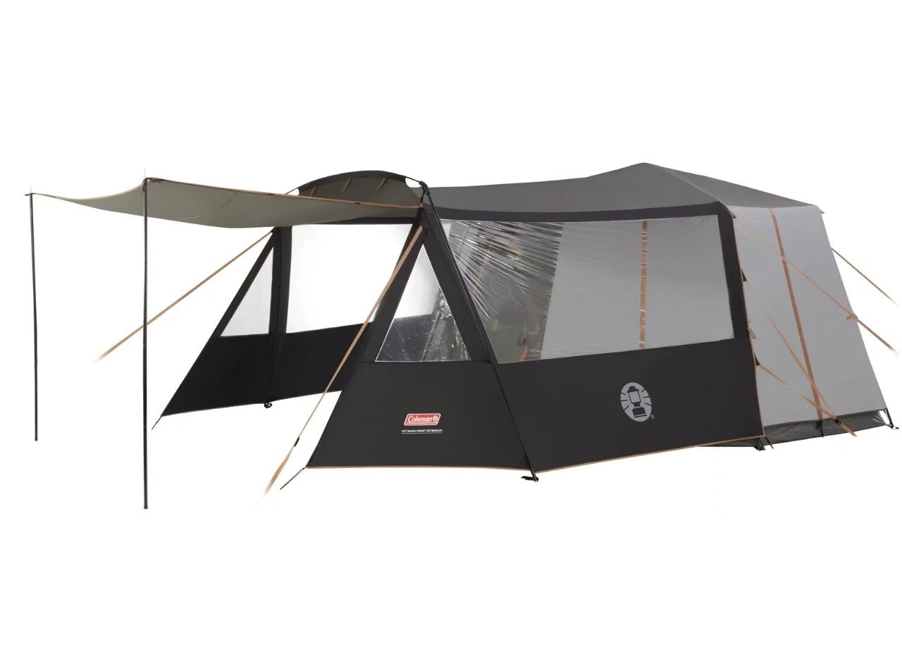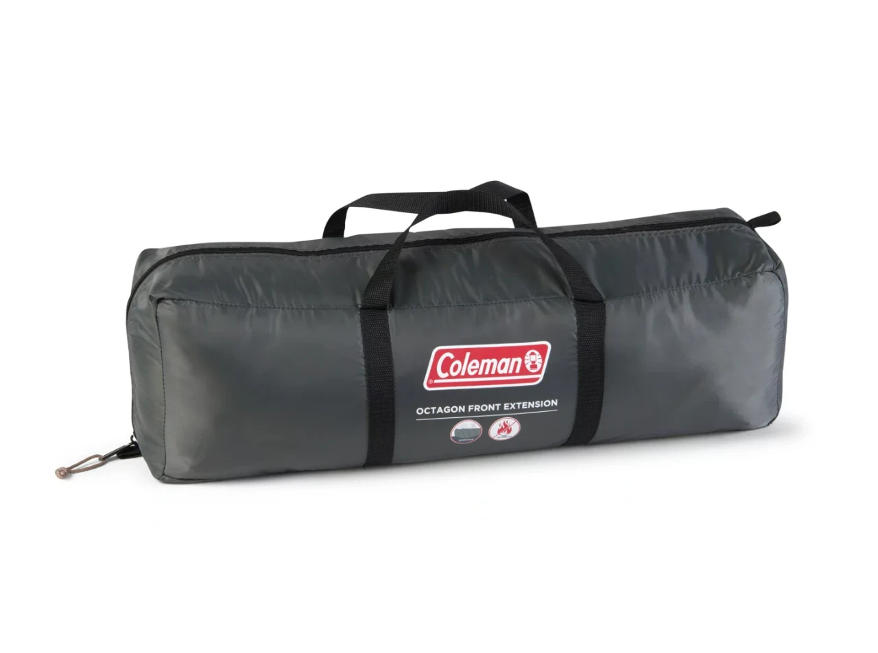 The Coleman Octagon 8 Front Extension Grey adds 11.6m2 of living space to any Octagon tent, with an extra canopy for storage of camping gear. This extension is perfect for families and large groups, providing a neat and organized campsite. The outer fabric is durable PU-coated polyester with fire-retardant seams, and the carry bag is 100% Polyester, making it easy to transport.