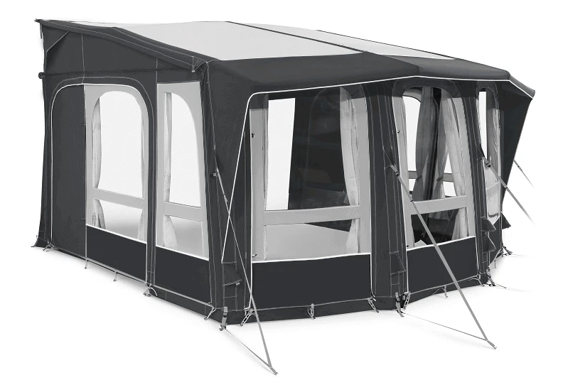 The Dometic Ace AIR All Season 400 S 2023 offers outstanding practicality, with Single Point Inflation Air Frame technology for a strong structure and easy setup. Ultra-rugged Weathershield™ All-Season material withstands longer seasonal pitches, while large full-height windows and skylights provide beautiful views during day and night. Moreover, the Multi-Height System ensures precise vehicle fitment and all panels are removable for reduced pull through weight. Dual Kador Beading allows attachment to a Windout awning and a typical awning rail.