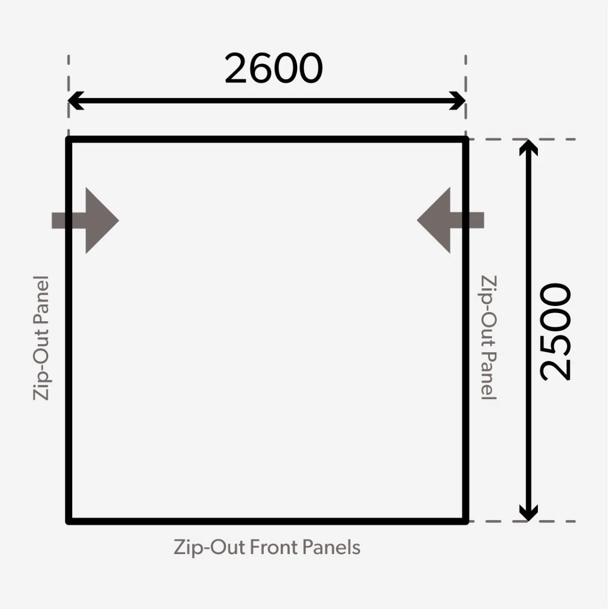Dimensions product depth 2500 mm
