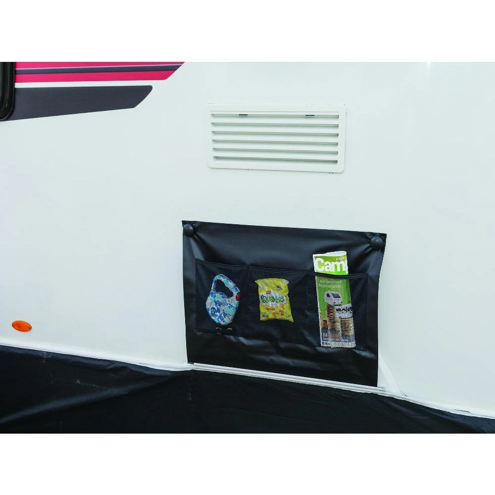 The Dometic Single Wheel Arch Cover is simple to fit using the limpet fix system and includes a figure of 8 strip to attach a draught skirt (not included). The wheel arch cover is ideal for keeping unwanted draughts out of your awning and has handy storage pockets to keep you organised.