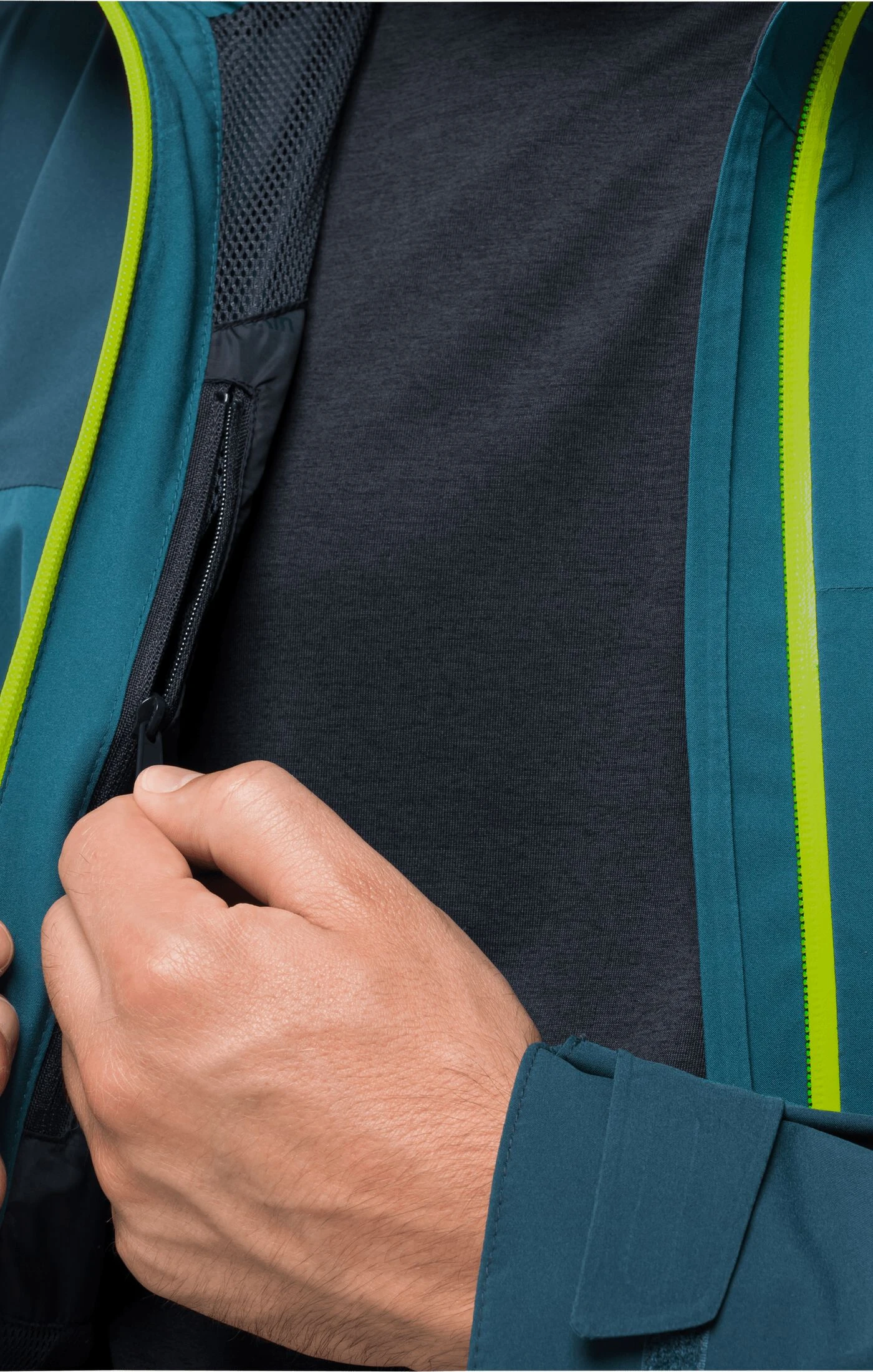 The Jack Wolfskin Go Hike Jacket in Men’s Blue Haze is the perfect choice for your next outdoor adventure. It offers complete weatherproof protection and a breathable, lightweight design. The fabric is soft and stretchable for enhanced mobility and comfort, and is made with recycled materials and PFC-free processes, making it environmentally friendly. And at just 450 g, it’s the ideal combination of protection and comfort. Perfect for those who want a waterproof jacket, but don’t want that crisp packet feel.