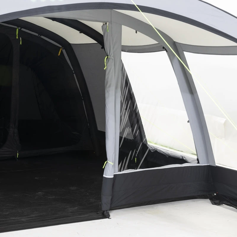The 2023 Croyde 6 Air TC is an Inflatable Kampa Croyde 6 but with durable weathershield TC fabric. Weathershield TC has major benefits over polyester – It’s much cooler inside on hot days, It contracts and becomes more rigid when it gets wet and lastly and more importantly, if looked after will last much longer than regular fabrics. Weathershield TC is ideal for people who go away for long periods at a time, or who camp in hotter countries. Despite it’s size, the Croyde 6 Air TC inflates in just minutes leaving you more time to enjoy your holiday. A handy large porch leads to a generous living area with sewn in ground sheet. The living area will easily accommodate a large table, or enough space on rainy days for you all be inside and not on top of each other. The large ‘sleep tight’ darkened bedrooms are at the back of the tent, and will easily sleep up to 6 adults.