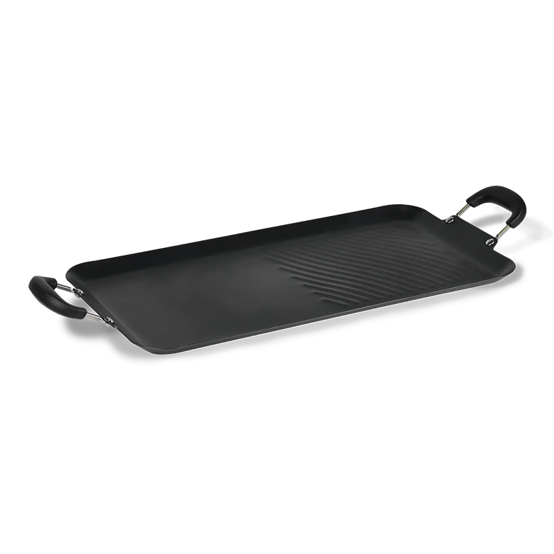 The perfect choice for frying eggs etc when you need a good, flat surface. Simply fits on top of most two burner stoves.