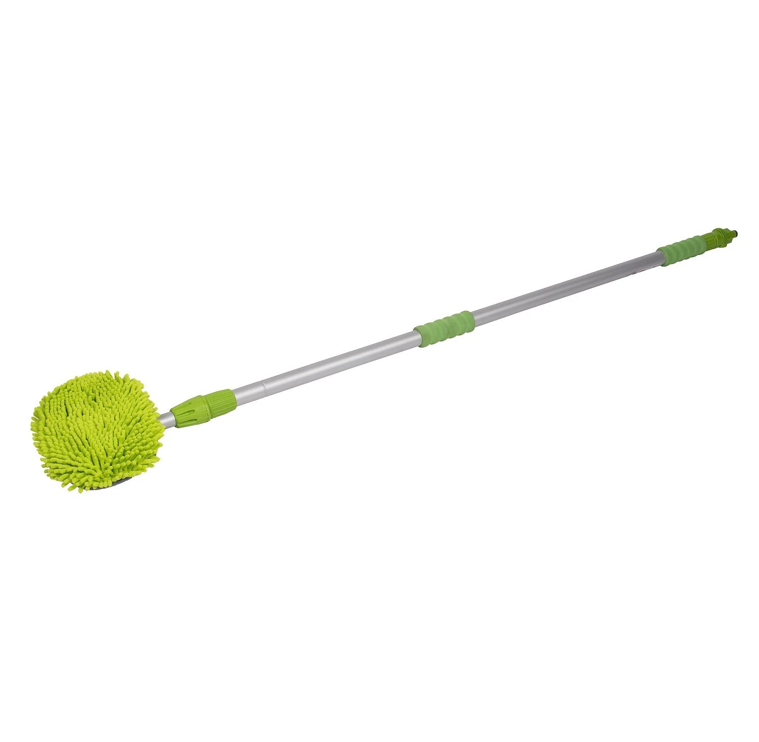 2.5m telescopic pole – Extra soft microfibre brush head – Hose connection – On/off switch – Detachable head can be used as a hand brush