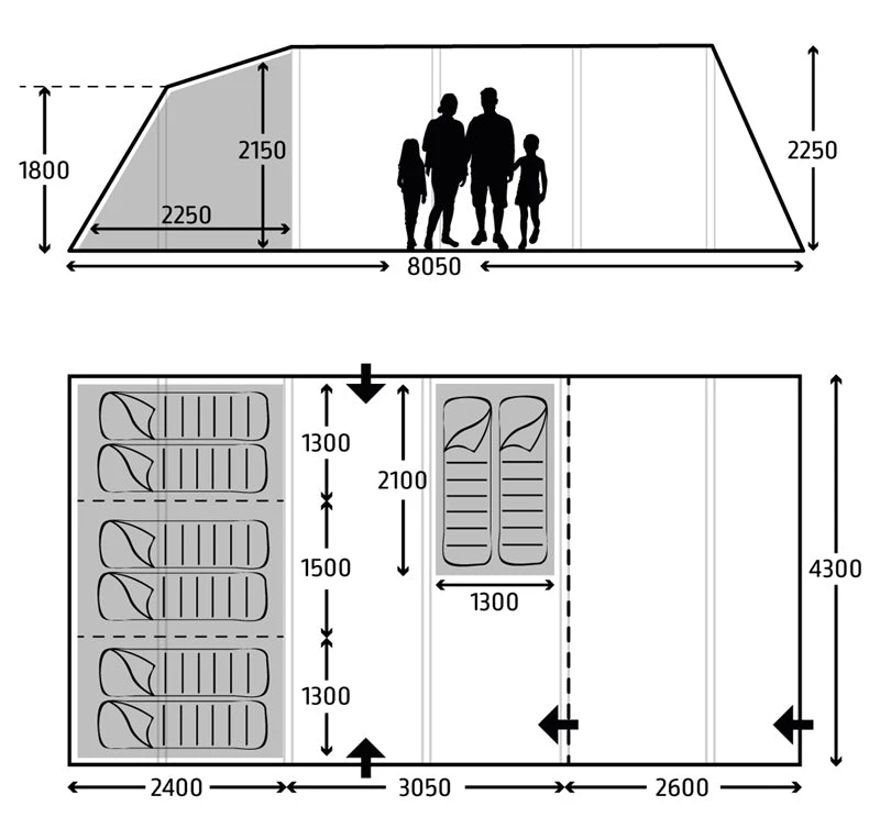 The 2023 Kampa Studland 8 AIR is an ideal camping solution, perfect for those with larger familes, or just for those campers who love masses of space. The Studland 8 features a flysheet and inner which pitch together in a mere 13 minutes. The fabric is Weathershield 68D giving 100% waterproofing peace of mind and Kampa’s own AirFrame Inflatable Poles ensure a durable, safe structure. With toggle up curtains for the ultimate in privacy and a sewn-in groundsheet and pump included, you can rest assured you’re making a great investment.