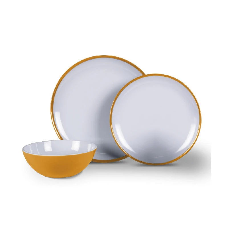 The Kampa Sunset 12 Piece Set is perfect for outdoor dining. This set is made with 100% melamine, is BPA free and is dishwasher safe on the top rack only. It is heat-resistant up to 10˚C/ 70˚C for 2 hours. The set includes 4 dinner plates, 4 side plates and 4 bowls. For safety and care instructions, wash before use and do not use abrasive cleaning tools.