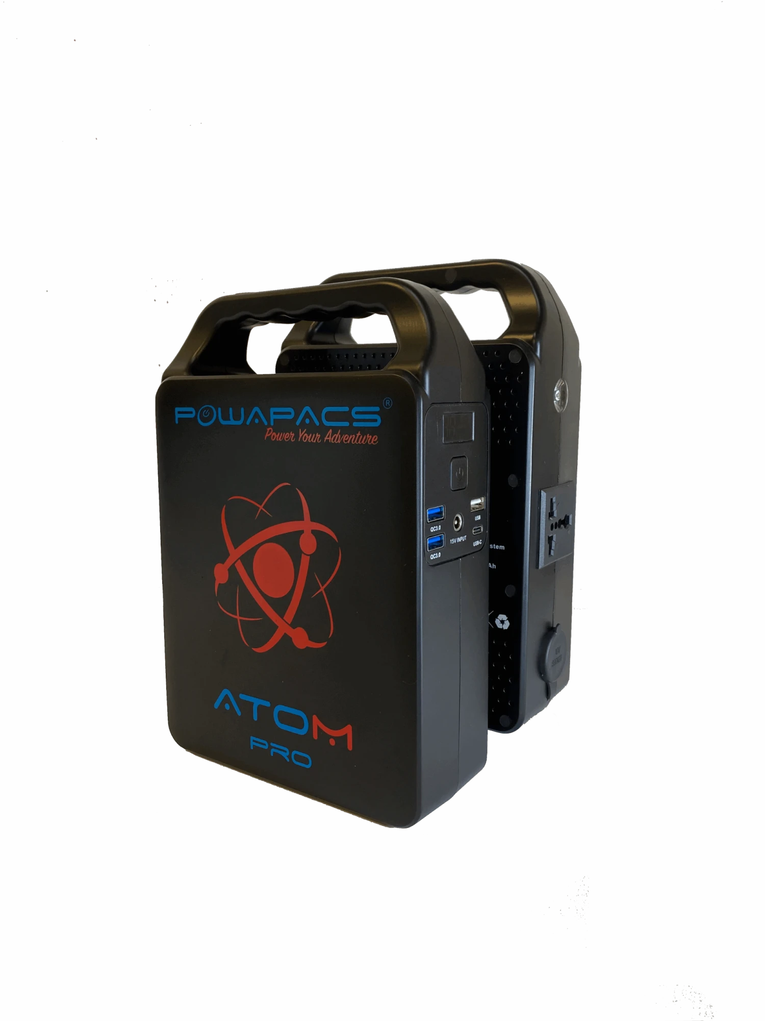 The Atom Pro 96K is the Third generation of portable power stations from Powapacs. The integrated Lithium-Ion battery makes the Atom Pro 96K a compact power station weighing just 2kg, allowing almost all electrical devices up to 150 watts to be run from it. With the BIGGEST battery capacity on the market for its size the ATOM PRO 96K has a HUGE 346Wh, 32Ah and a range of 6 outputs, the Atom Pro 96K is suitable for charging smartphones, tablets, laptops, drones, lighting and other equipment. It is the “must have” mobile power solution for your holiday at the campsite, the fishing lake or during a survival holiday.