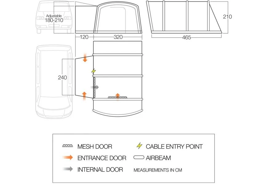 The 2023 Vango Galli drive away awning is ideal for anyone who wants a large and versatile space on their outdoor holiday. This awning boasts the option of space for two bedroom inner tents. Our inflatable AirBeam® technology means you can pitch this awning in a matter of minutes so you’ve got more time to enjoy your holiday. The pre-angled beams create ample height throughout and the Sentinel Pro Fabric is perfect for touring with your campervan. It’s also made even easier with multiple attachment options and the roll away tunnel allows you to drive away, leaving your awning free-standing.