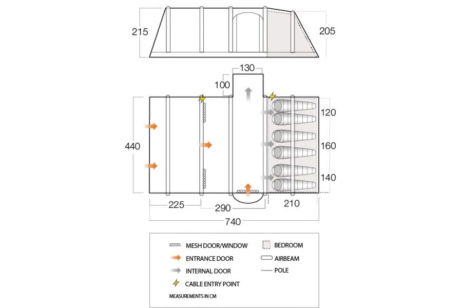 The Vango Rome Air 650XL 2023 is perfect for campers who want to stay organised during their holidays. Its AirBeam® technology and Sentinel Dura fabric provide high durability and a reliable waterproof rating of 4000mmHH. In addition, ColourLok™ offers you a 30% increase in strength and less sun fade and a side storage pod for all your belongings helps to keep things organised. With an integrated awning and large front doors, this 6 person inflatable tent allows you to enjoy a sheltered spot for socialising, or just to watch the world float by.