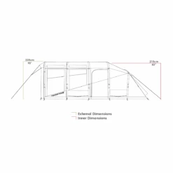 The Zempire Evo TXL V2 Air Tent 2023 provides optimal comfort for up to 6 people with a maximum accommodation of 8. With up to 4 sleeping areas and 1 optional room pod, you and your family can enjoy a spacious, protected living space. Boasting a generous peak height of 215cm / 84.6in in the bedroom and 225cm / 88.6in in the fly, this tent is made of highly durable 150D, 135T poly oxford fabric with a 6,000mm waterhead rating and UPF 50+ UV rating. Enjoy a safe and comfortable camping experience.
