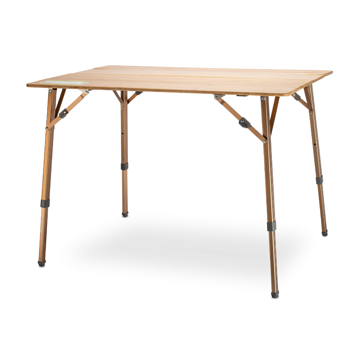 Enjoy outdoor activities with the convenience of the Zempire Kitpac Large V2. This lightweight, rust-resistant table features a treated natural bamboo tabletop and square-profile aluminum frame that folds down and fits neatly into a durable carry bag. The adjustable legs provide a range of heights and micro-adjust feet for levelling on uneven surfaces, while the 50kg weight capacity and bottle opener make it an undeniably practical and versatile solution.
