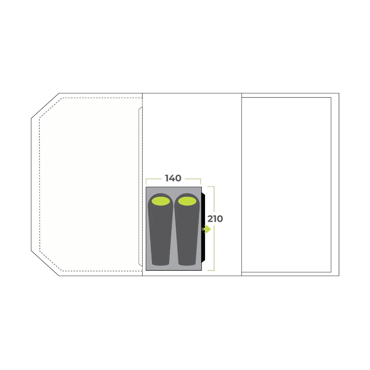 The Zempire TXL V2 Bedroom provides a comprehensive solution for extra privacy or storage. Compatible with previous Aero TXL Pro and Aero TXL Lite models, the Bedroom clips in and out with ease, providing full head height and space for a twin stretcher. With clever colour-coded tabs and glow zip pullers, it’s the perfect addition for extended family camping trips.